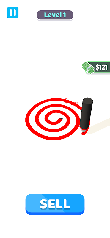 Start drawing lines with the pen, increase the size of the pen using increments, and finally decide whether to sell or draw!
