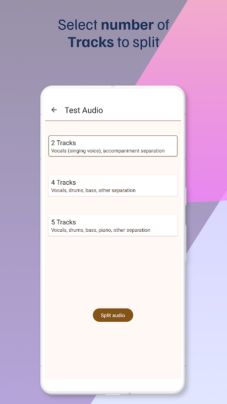 • क्राफ्ट मनमोहक बैकिंग ट्रैक 🎹 अपने संगीत उत्पादन को अगले स्तर पर ले जाएं। स्प्लिटिफ़ाई आपको अपने पसंदीदा गीतों से वाद्य ट्रैक को अलग करने की अनुमति देता है, जो आपकी संगीत रचनाओं को उन्नत करने के लिए उच्च गुणवत्ता वाले बैकिंग ट्रैक प्रदान करता है। आसानी से स्वर निकालें और वाद्य कवर बनाएं।