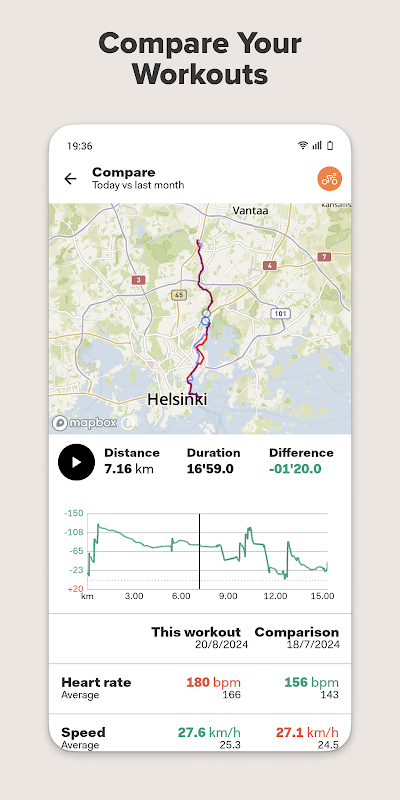 मुफ्त ऑनलाइन सेवा स्वचालित वर्कआउट बैकअप, विस्तृत नक्शे और विश्लेषण दृश्य, दोस्तों के वर्कआउट और बहुत कुछ प्रदान करती है।
