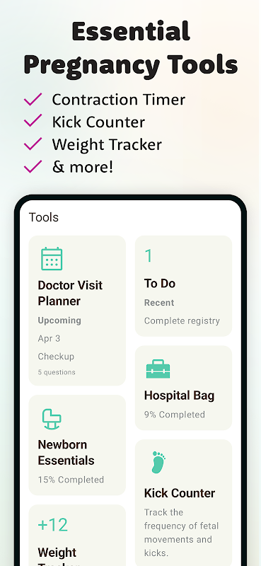 • अपने प्रसव पैटर्न को लॉग करने और प्रसव के लिए तैयार करने के लिए संकुचन टाइमर का उपयोग करें।