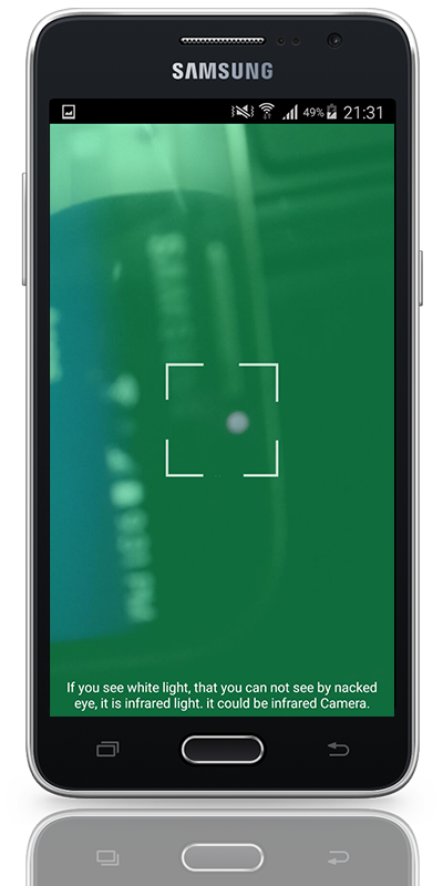 Hidden spy camera detector detect hide and spamming device with infrared light effects this effect detect the white light of spy devices which normal sight can see.