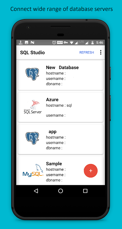 Android के लिए निशुल्क MySQL क्लाइंट, SQL सर्वर क्लाइंट और पोस्टग्रेस क्लाइंट।