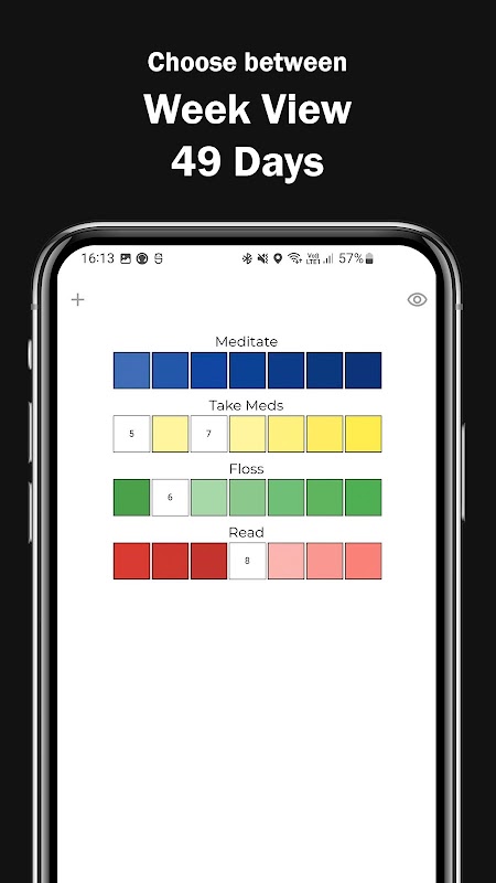 आप एक आदत को दो अलग-अलग दृश्यों में देख सकते हैं, एक सप्ताह का दृश्य मोड और एक 7 सप्ताह का ग्रिड दृश्य मोड।