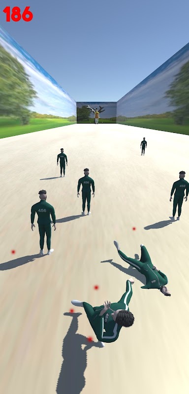 It's offline 3D game and it's inspired by the Squid Game series. All characters are 3D. A fantastic 3D game experience. All players have their own number. When player die he will scream and blood particle effect will play. Player have animations: Idle, Run, and Dying. In game are Squid Game workers with their idle animation. And Squid Game doll has rotation animation.