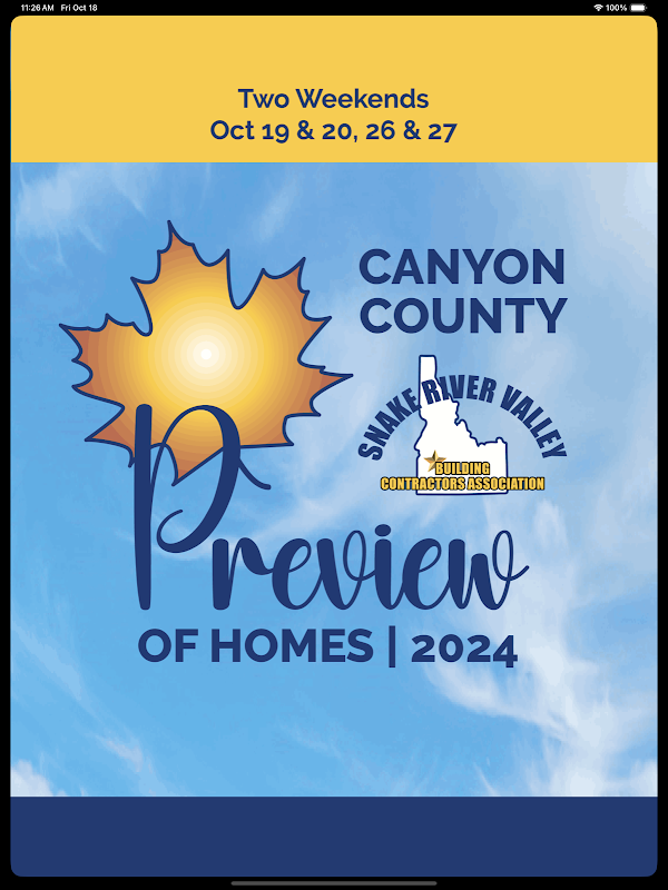 स्नेक रिवर वैली बिल्डिंग कॉन्ट्रैक्टर्स एसोसिएशन को घरों का 2024 कैन्यन काउंटी फॉल पूर्वावलोकन प्रस्तुत करने पर गर्व है। 2024 परेड 19 अक्टूबर से 27 अक्टूबर 2024 तक केवल सप्ताहांत पर चलेगी। घर न्यू प्लायमाउथ, कैल्डवेल, नम्पा और मिडलटन में स्थित हैं।
