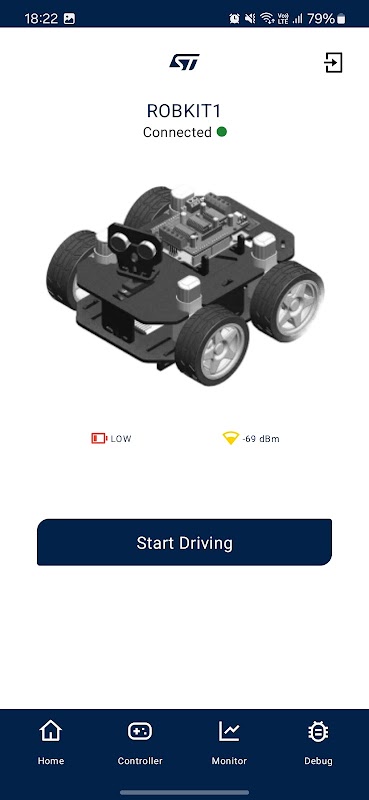 रोबोटिक किटों को स्कैन करने और नियंत्रित करने के लिए एसटी रोबोटिक्स एप्लिकेशन।