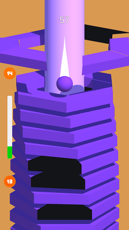 Press and hold on the screen and let the ball go down without touching the obstacles! Hold as long as possible to make a combo and break the black blocks. Let the ball fall down from the helix stacks.