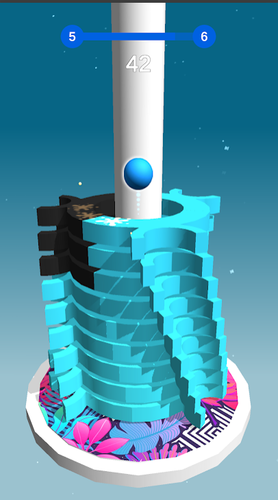 एक जीत के साथ रंग के ढेर को तोड़ने के लिए हेलिक्स प्लेटफार्मों पर गेंद को हिट करने के लिए टैप करें