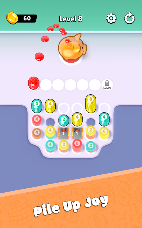 जब एक स्टैक 10 सिक्कों तक पहुँच जाता है, तो इसे आपके गुल्लक में भेज दिया जाएगा।