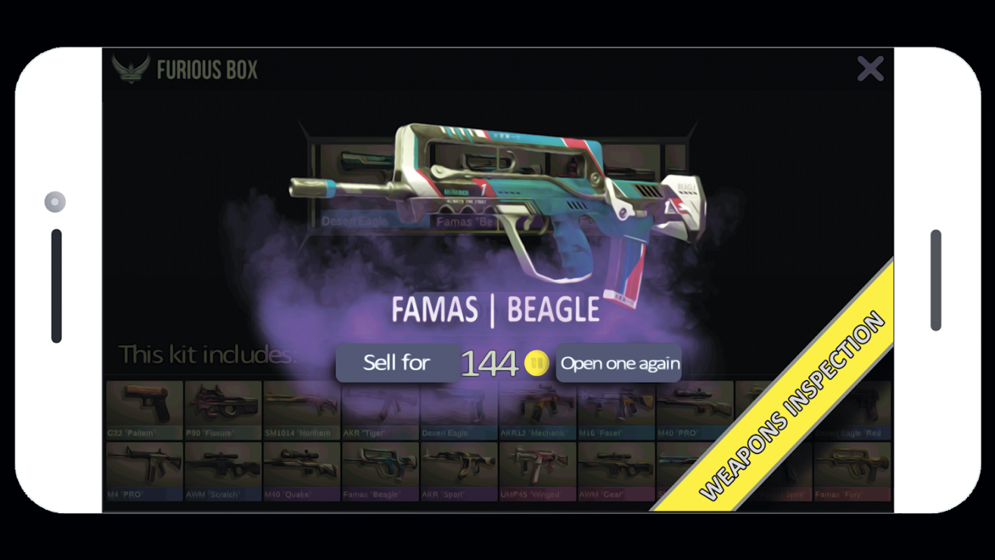 The game has all the weapons from the game Standoff. In addition to the usual boxes and cases, available secret case, which is hidden the most expensive weapon!