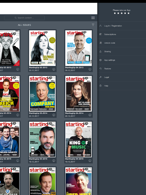 4 बार एक साल आप एक उद्यमी के रूप में एक सफल शुरुआत के लिए उपकरण StartingUp कर रहे हैं। अपने मोबाइल डिवाइस के लिए अब पूर्ण पत्रिका प्राप्त करें और सस्ते एकल या सदस्यता मूल्य से लाभ। एकल संस्करण € 5.99, selbstverlängernde आधा-वर्ष की सदस्यता € 11.99 (2 अंक) और वार्षिक सदस्यता € 22.99 (4 मुद्दों) खर्च होता है।