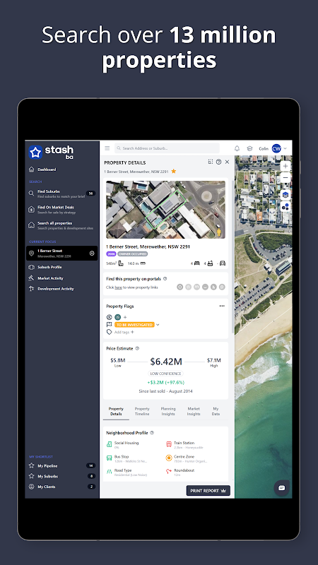- ऑन और ऑफ-मार्केट अवसर: विकास या नवीकरण के लिए तैयार ऑन और ऑफ-मार्केट संपत्तियों को खोजने के लिए हमारी एआई-संचालित खोज का उपयोग करें।