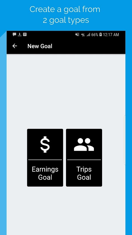 Stay Motivated allows you to create two types of goals: earnings (how much money you want to make today) and trips (how many trips you want to complete today).