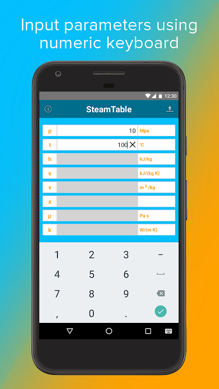 इस उत्पाद के डेवलपर्स में से एक ने एक स्टीम टर्बाइन विकास केंद्र में काम करने का लंबा अनुभव के साथ, आवश्यकताओं कि एक अभ्यास इंजीनियर को उठता से ज्यादातर इस आवेदन में शामिल किया गया है। मैकेनिकल इंजीनियरिंग के छात्र निश्चित रूप से नियमित रूप से मुद्रित प्रारूपों से एक संपत्ति पाने की बुनियादी तथ्य तरीके से एक बड़ी राहत के लिए इस उपकरण में मिल जाएगा। IAPWS सूत्रीकरण (जल के गुण और स्टीम के लिए इंटरनेशनल एसोसिएशन) के नवीनतम यदि -97 विभिन्न गुणों उत्पन्न करने के लिए इस्तेमाल किया गया है। गणना कठोर परीक्षण और सत्यापित किया गया है। दबाव और तापमान के महत्वपूर्ण मूल्यों के करीब कुछ गणना छोटे विचलन दिखा सकते हैं। हम आपकी प्रतिक्रिया और सुझावों का स्वागत