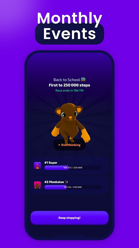 प्रेरित रहने, सक्रिय रहने और एक-एक कदम चलकर कैलोरी बर्न करने के लिए लीडरबोर्ड और मासिक इवेंट्स में प्रतिस्पर्धा करें।