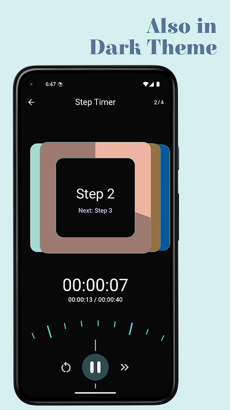 स्टेप टाइमर एक के बाद एक स्वचालित रूप से टाइमर चलाने के लिए आपका सहज साथी है। चाहे आप वर्कआउट कर रहे हों, पढ़ाई कर रहे हों, खाना बना रहे हों या प्रयोग कर रहे हों, स्टेप टाइमर आपको अपने रूटीन को आसानी से और बिना किसी व्यवधान के पूरा करने में मदद करता है।