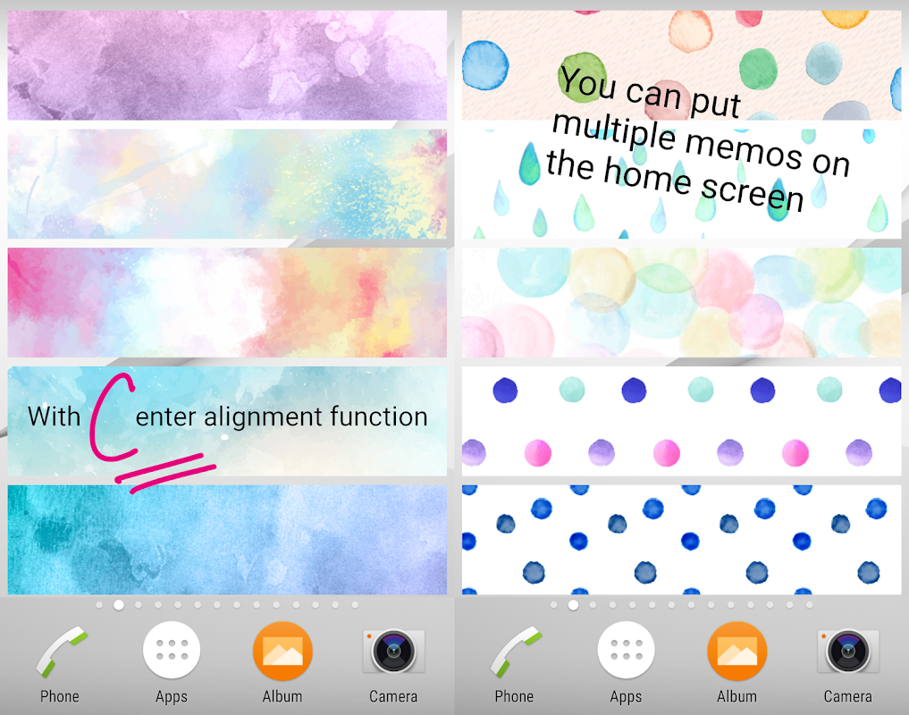 3. "मेमो वॉटरकलर 2 फ्री" विजेट को दबाकर रखें। आपको हर होम स्क्रीन की इमेज दिखाई देंगी।