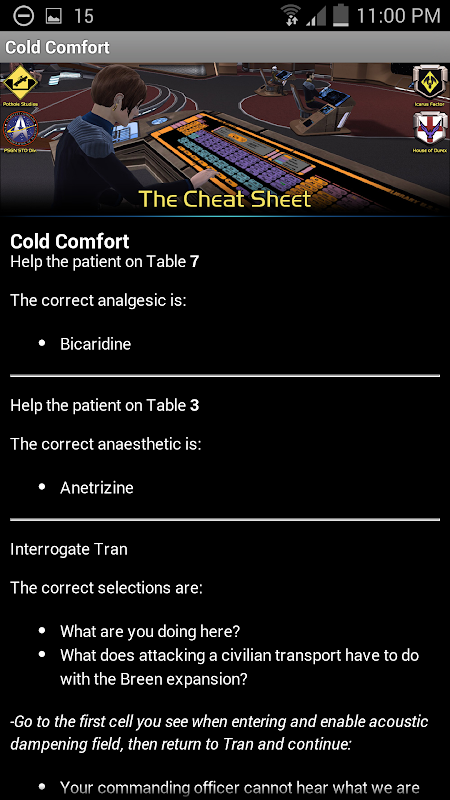 धोखा पत्र में वास्तविक धोखा नहीं होता है, कुछ कठिन मिशनों के जवाबों की एक सूची, जैसे कि मिशन "कोल्ड कम्फर्ट" में "ट्रोग्रोट ट्रान" का सही तरीका और मिशन में डेफरानी कैदियों को मुक्त करने का सही तरीका "मुक्ति" "