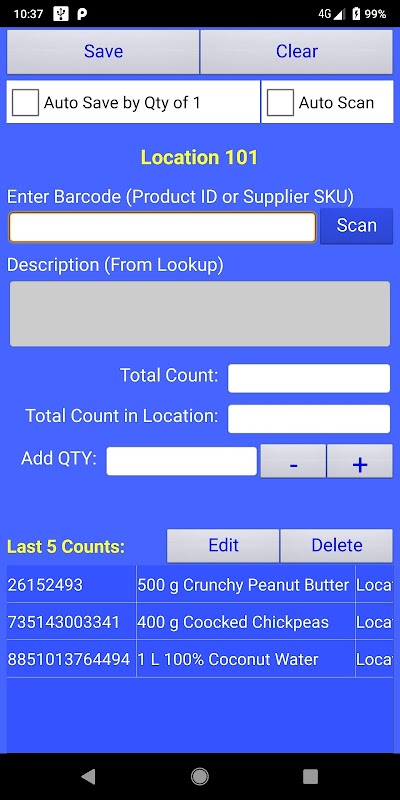 आप अपनी लुकअप फ़ाइल डाउनलोड कर सकते हैं जिसे ऐप में आइटम सूची के रूप में भी जाना जाता है, ऐप स्कैन होने पर बारकोड को पहचान लेगा और उनका विवरण प्रदर्शित करेगा। यदि लुकअप फ़ाइल में कोई आइटम नहीं मिलता है, तो यह आपको इसे जोड़ने के साथ-साथ गणना रिकॉर्ड को सहेजने की अनुमति देगा।