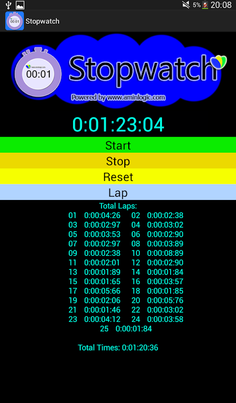स्टॉपवॉच - घड़ी में मदद करता है कि आप खेल, शिक्षा के लिए अपने समय को मापने के लिए, खाना पकाने और आदि Android के लिए एक मुक्त, डिजिटल और अच्छी तरह से डिजाइन आवेदन है