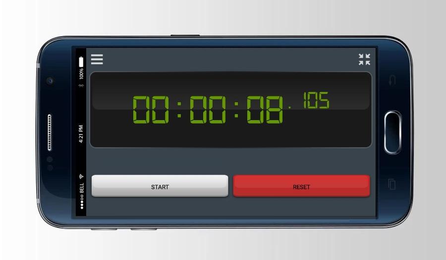 स्टॉपवॉच या टाइमर एक उपकरण है जो आपको समय को मापने की अनुमति देता है। यदि आप समय को मापना चाहते हैं जो आपके दोस्त को 100 मीटर दौड़ने या बाइक या रोलर स्केट्स पर कुछ दूरी की सवारी करने के लिए लेता है, तो आप इसे आसानी से कर सकते हैं आप यह सीखने के लिए रसोई में भी उपयोग कर सकते हैं कि आपकी चाय की केतली को उबालने के लिए या सटीक के साथ कुछ नुस्खा का पालन करने के लिए कितना समय लगता है। अब आप अपनी पिछली उपलब्धियों या अन्य लोगों के रिकॉर्ड के साथ अपने खुद के चलने के समय की तुलना कर सकते हैं। यह सभी दूरी और सभी प्रकार की गतिविधियों के लिए अच्छी तरह से अनुकूल है। बड़े बटन आपको एप्लिकेशन को आसानी से प्रबंधित करने और समय को मापने के लिए सक्षम करते हैं।
