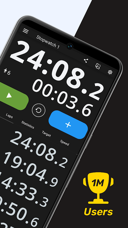 स्टॉपवॉच और लैप टाइमर - एडवांस्ड स्पोर्ट क्रोनोग्राफ का उपयोग करना आसान है, जिसमें कई समवर्ती टाइमर, ऑटो स्केलिंग पाठ, साइड बटन संचालन और समय के आँकड़े जैसी उन्नत सुविधाएँ हैं। स्टॉपवॉच और लैप टाइमर को विश्वसनीयता, सुविधाओं और सरल उपयोगकर्ता इंटरफ़ेस के लिए इंजीनियरों, रेस समन्वयक और मोटर स्पोर्ट पेशेवरों से प्रशंसा मिली है। इसमें तीन अलग-अलग रिकॉर्ड किए गए टाइमर दृश्यों की एक अनूठी स्टॉपवॉच विशेषता है ताकि लैप समय, विभाजन समय और आंकड़े बड़ी स्पष्ट संख्या में अलग-अलग दिखाए जा सकें। इस मुफ्त टाइमर ऐप में विशाल बटन और संख्याओं के साथ एक बड़ा परिदृश्य दृश्य है। रिकॉर्ड किए गए लैप समय और कुल समय को दो उंगली चुटकी / विस्तार इशारे का उपयोग करके आकार दिया जा सकता है।