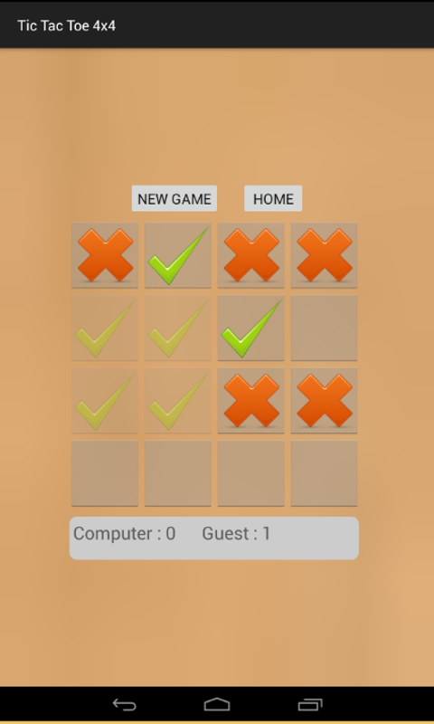 4x4 ग्रिड 19 मामलों को जीतने के लिए 'के साथ टिक टीएसी को पैर की अंगुली' आवेदन। दो मोड