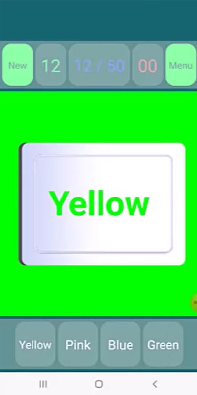 2. खेलने का मोड "रंग पहचानें, अर्थ चुनें" - रंग पहचानें और उस बटन पर क्लिक करें जिस पर उस रंग का नाम लिखा हो.