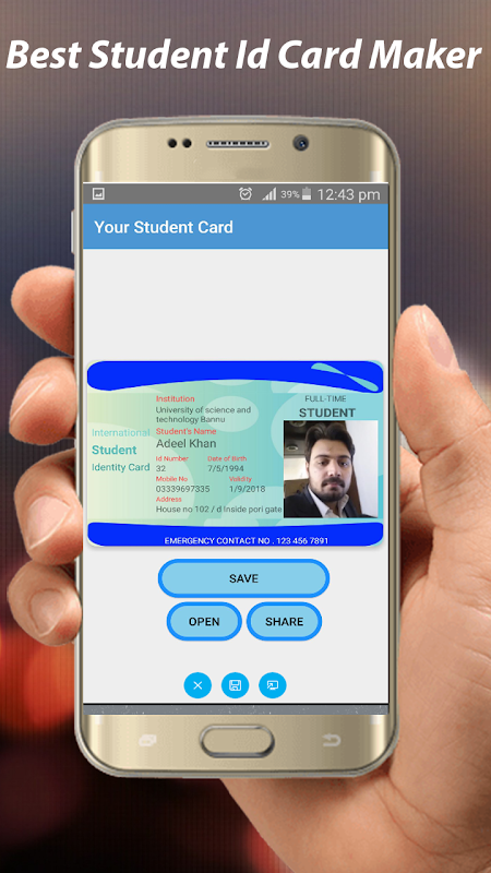 Create your own student card with student ID card maker. The student ID card maker app renders you the complete functionality for making your student card in a facile way. The student ID card maker renders the general student card creator for every institution. No matter if you are a student or an admin officer. It is as simple as you image to develop a student card with student ID card maker. Develop your own student card with complete and access. The student card input some of your details and output an image for your real student card. Just give some of your details like name, first name and your desired picture and creator student card with your own for free.