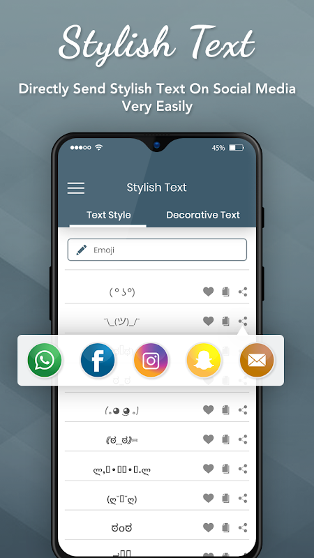 स्टाइलिश टेक्स्ट उपयोग करने में आसान और अविश्वसनीय रूप से आसान है। यह सामान्य पाठ को विभिन्न स्टाइलिश शांत पाठ में बदलने में मदद करता है, इस प्रकार यह शांत प्रतीक और फैंसी फ़ॉन्ट के साथ पाठ बनाने में मदद करता है।