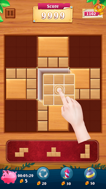 - Drag and drop the wooden blocks on a 9x9 grid, familiar to all Sudoku fans.