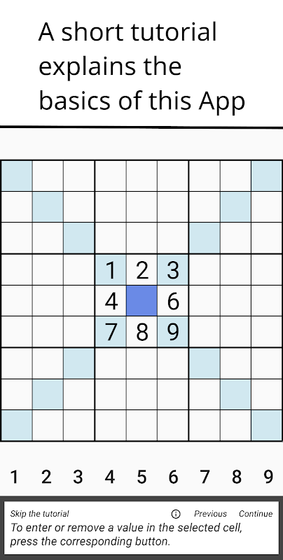 The App contains multiple tools to help you solving the Sudokus. All of these can be tweaked to your personal preferences in the settings menu.