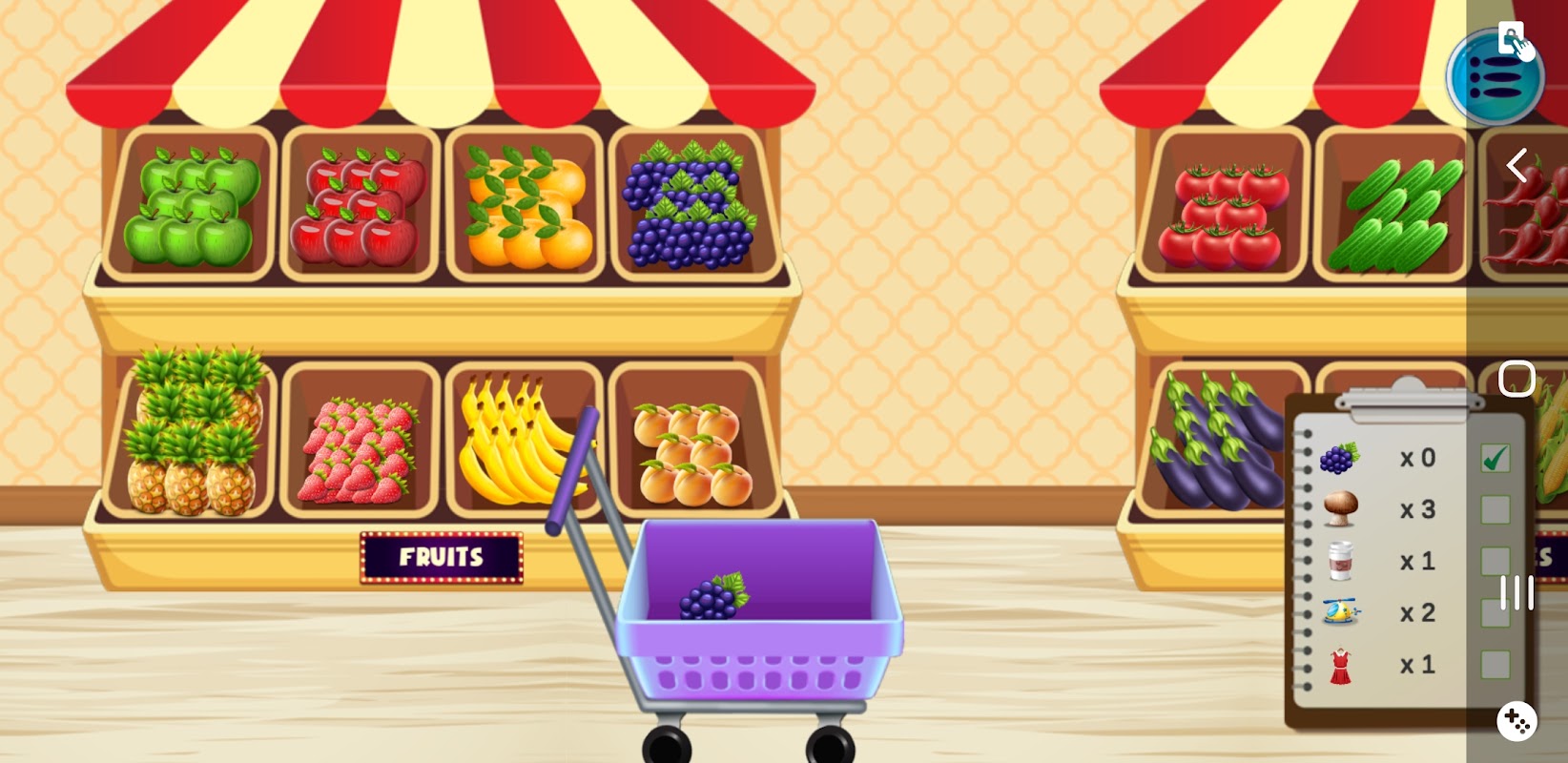 शॉपिंग सुपरमार्केट में, आप रंगीन सुपरमार्केट की दुनिया में प्रवेश करेंगे, जहाँ आप खाने-पीने से लेकर फ़ैशन तक, हर चीज़ की खरीदारी कर सकते हैं. आप कूड़ा भी उठा सकते हैं और उसे अलग कर सकते हैं, फल काटने का खेल भी है. और आप केक भी बना सकते हैं.