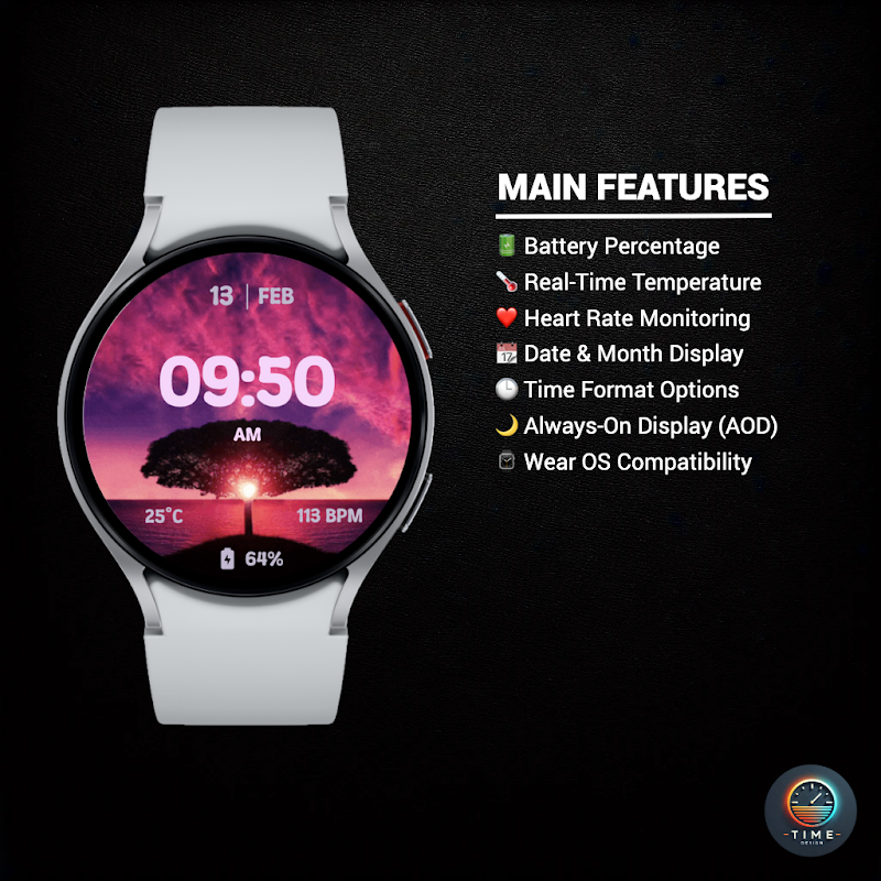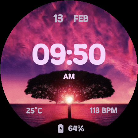 Sunset Shift Watch Face के साथ कभी न खत्म होने वाले सूर्यास्त की शांति का आनंद लें – जहाँ प्रकृति और तकनीक का संगम होता है।