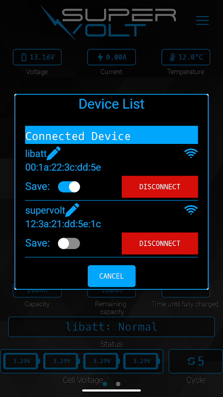 सुपरवोल्ट LiFePO4 लिथियम बैटरी से कनेक्ट करने के लिए ब्लूटूथ ऐप