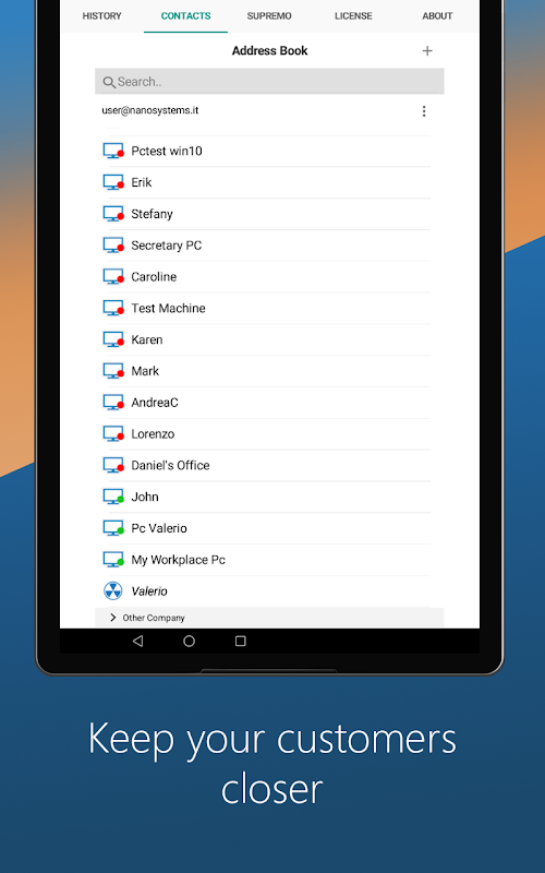 सुप्रीमो रिमोट डेस्कटॉप रिमोट डेस्कटॉप नियंत्रण और समर्थन के लिए एक शक्तिशाली, आसान और पूर्ण समाधान है। यह कुछ ही सेकंड में रिमोट पीसी तक पहुंचने की अनुमति देता है। सुप्रीमो सुप्रीमो कंसोल, आईटी प्रबंधन कंसोल के साथ भी संगत है।