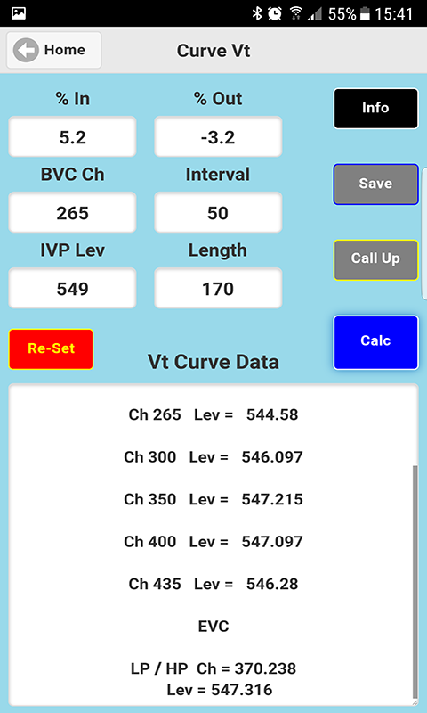 9) वर्टिकल कर्व ऐप किसी भी वर्टिकल कर्व टाइप पर हाई / लो पॉइंट सहित (सैग या क्रेस्ट) लेवल के एक बैच की गणना करेगा, जिसमें कर्व से टेंज़ेंटिंग लाइनों को लंबाई में बराबर माना जाता है।