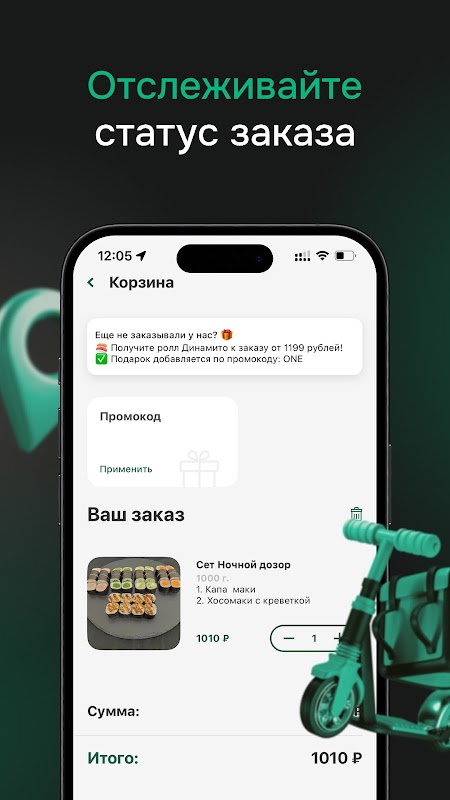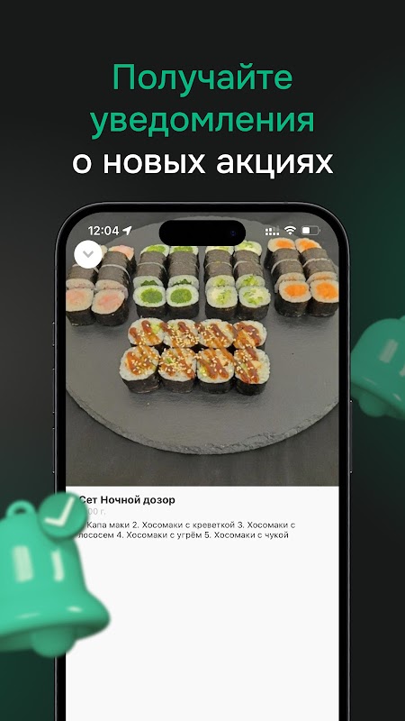 हमारे मेनू में आपको स्वादिष्ट रोल, लाभदायक सेट और कई अन्य स्वादिष्ट चीजें मिलेंगी। ऐप डाउनलोड करें और स्वयं देखें!