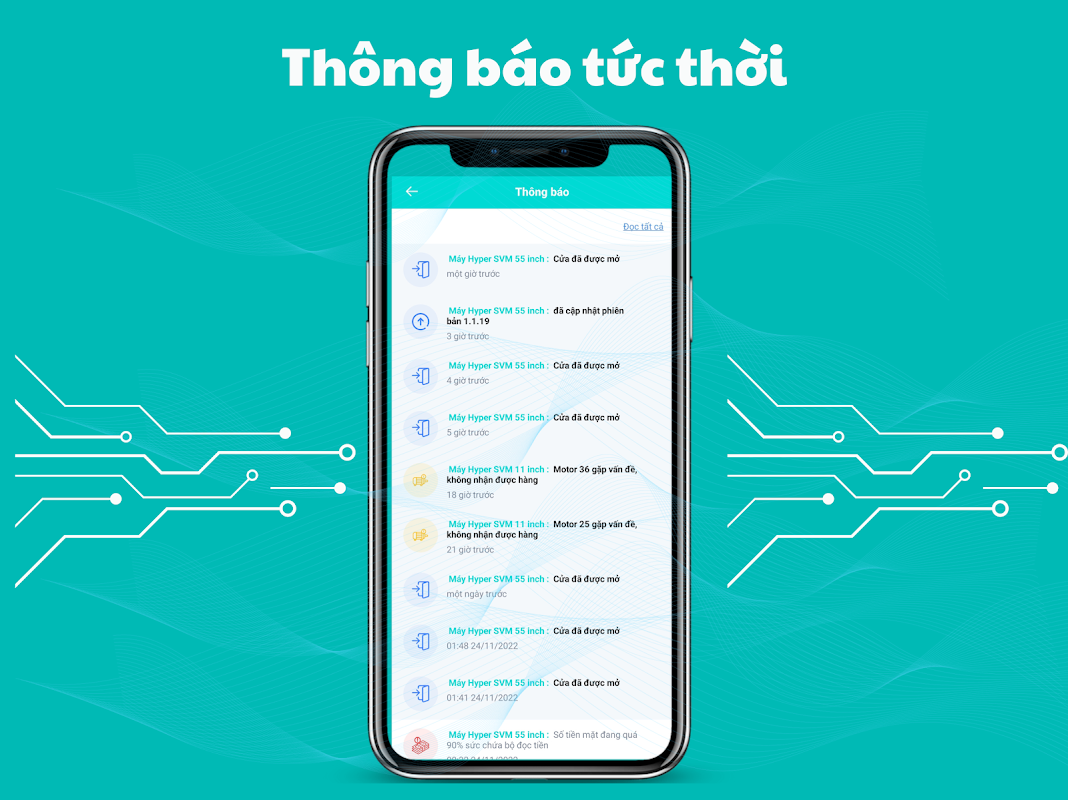 मशीन पर अचानक कोई असामान्य समस्या होने पर सूचित करें जैसे मशीन त्रुटि, आउट ऑफ स्टॉक, फुल मनी, इन्वेंट्री, ...