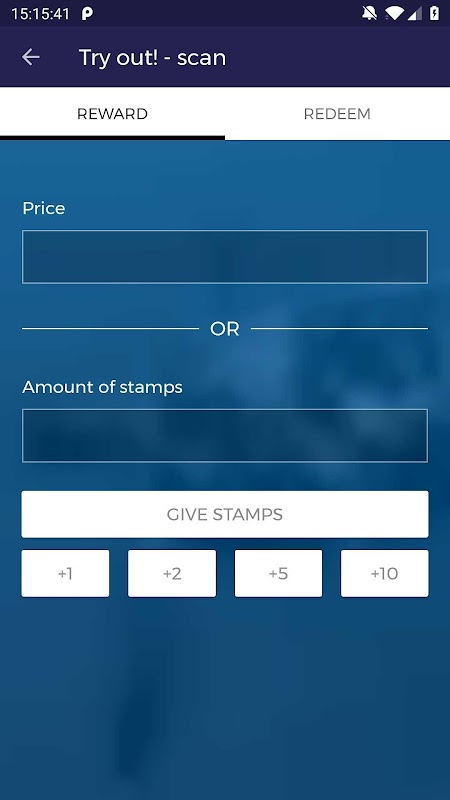 * You can also just fill in the amount of stamps / points and scan the QR code code of a user to give stamps instantly.