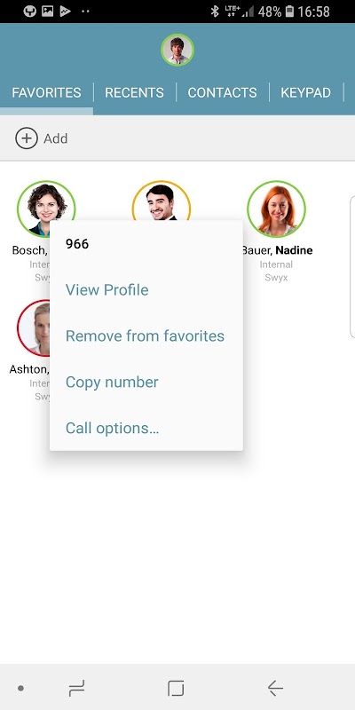 Are SwyxMobile के साथ “सभी व्यावसायिक कॉल टेलीफोनी हैं। आप अपने एंड्रॉइड स्मार्टफ़ोन को अपने कॉर्पोरेट संचार में मूल रूप से एम्बेड और बस एकीकृत कर सकते हैं - एक अभिनव उपयोगकर्ता इंटरफ़ेस अवधारणा के साथ सभी संचार कार्यों के लिए उपयोग में आसानी।