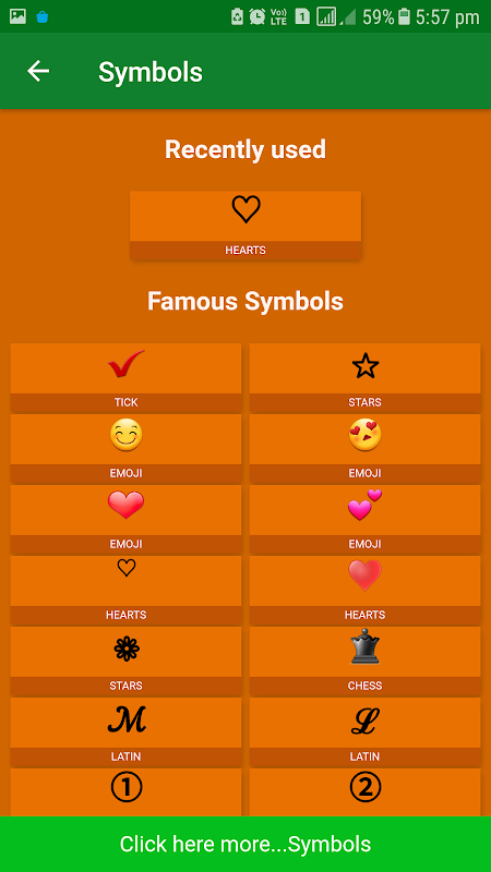 Best application for symbols copy and paste with one click copy option. This app contains symbols, text symbols and text emojis with one click copy and paste option