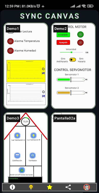 SyncCanvas आपके IoT (इंटरनेट ऑफ थिंग्स), होम ऑटोमेशन, रोबोटिक्स और DIY इलेक्ट्रॉनिक्स प्रोजेक्ट्स के लिए परफेक्ट ऐप है। ब्लूटूथ या लोकल WiFi (TCP/IP) के जरिए कस्टम इंटरफेस डिज़ाइन करें और बिना कोड लिखे और बिना बाहरी सर्वर पर निर्भर हुए अपने उपकरणों को रियल-टाइम में नियंत्रित करें।