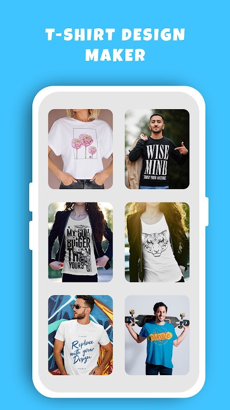 हमारे ऐप में आगे और पीछे टी-शर्ट के साथ सभी प्रकार की ग्राफिक डिज़ाइन सुविधाएँ हैं। आप हमारे मज़ेदार और उपयोग में आसान टूल के साथ, आसानी से अपने अद्वितीय टी-शर्ट डिज़ाइन को पूरा कर सकते हैं।