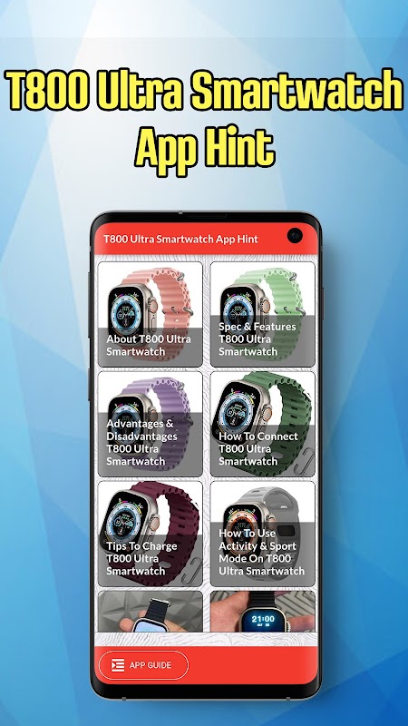 अपने T800 अल्ट्रा स्मार्टवॉच अनुभव को परम साथी ऐप, "T800 अल्ट्रा स्मार्टवॉच ऐप हिंट" के साथ बेहतर बनाएं। चाहे आप पहनने योग्य तकनीक में नए हों या अनुभवी उपयोगकर्ता हों, यह ऐप आपके डिवाइस की क्षमता को अधिकतम करने के लिए आवश्यक सभी अंतर्दृष्टि और युक्तियां प्रदान करता है।