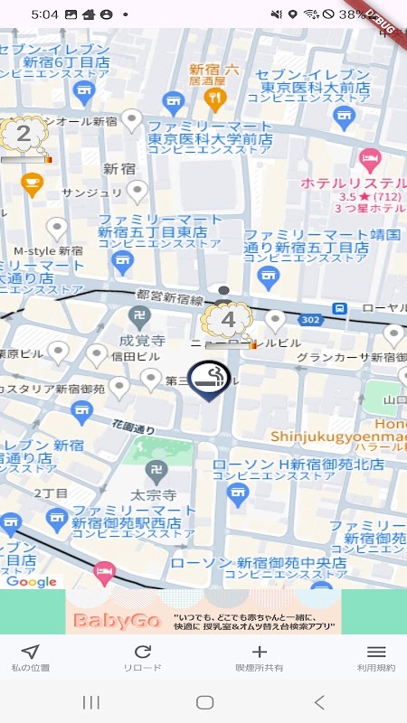周りの喫煙所を検索できるアプリ