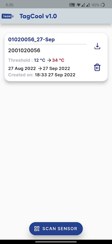 1. The application allows it's user to see temperature data as captured by TagBox's Tag360 Bluetooth Low Energy sensor in the selected timeframe.