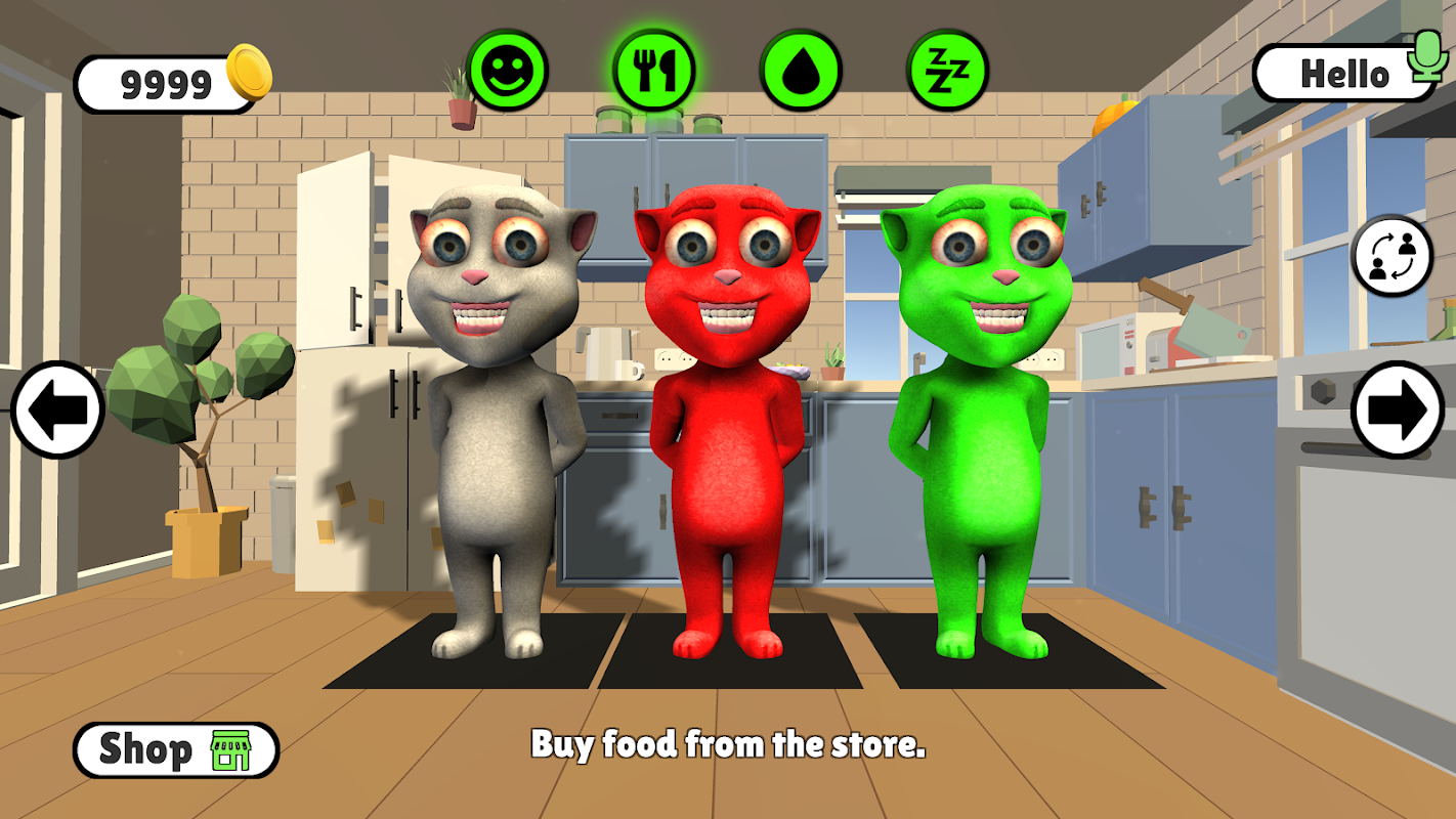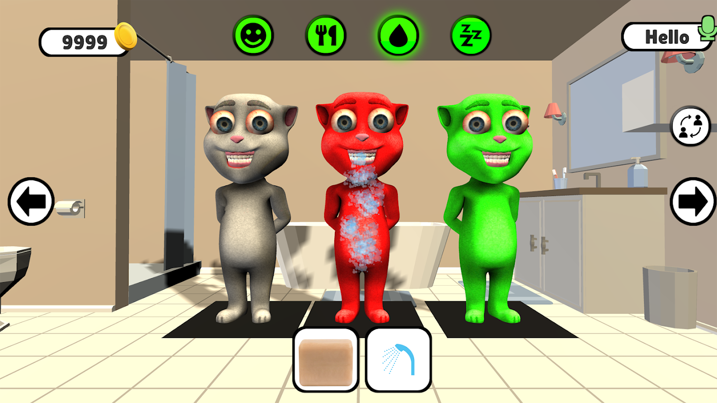 In Talking Juan Scary Cat, you can interact with Juan by talking to him and listening to his cute meows and purrs. You can also play mini-games like catching mice and racing, and earn coins to buy food, drinks, toys, and other items for Juan.