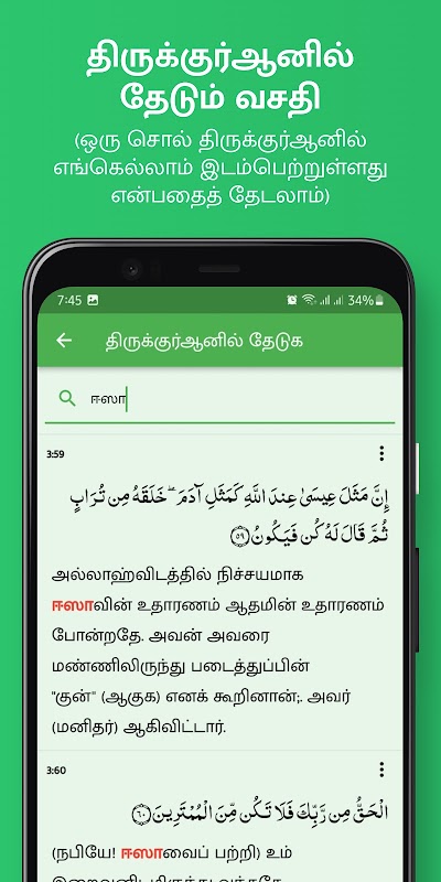'तमिल कुरान' ऐप आपको अरबी और तमिल दोनों भाषाओं में कुरान को पढ़ने और जानने का अधिकार देता है।