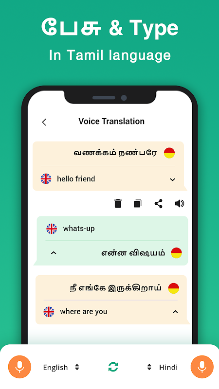 - कॉपी और पेस्ट सुविधाओं। आप अनुवादित पाठ तमिल या अंग्रेजी कॉपी, और यह कहीं भी उपयोग कर आप चाहते हैं कर सकते हैं।